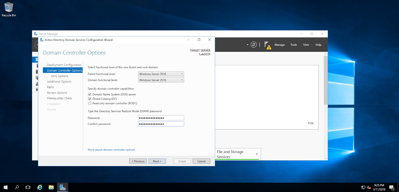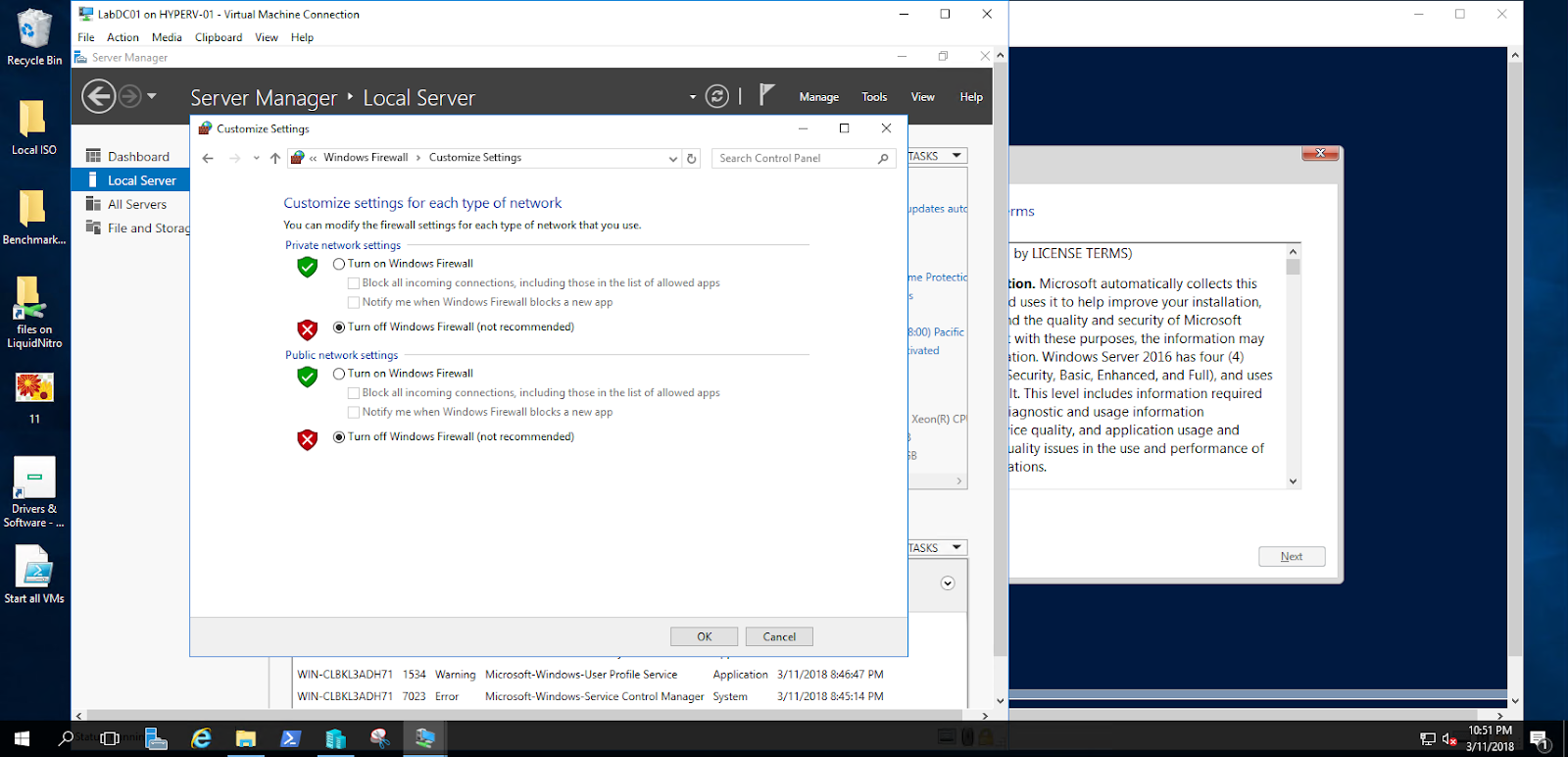 We have created the primary domain controller and in the next post we’ll cover configuration and adding a second domain controller virtual machine.